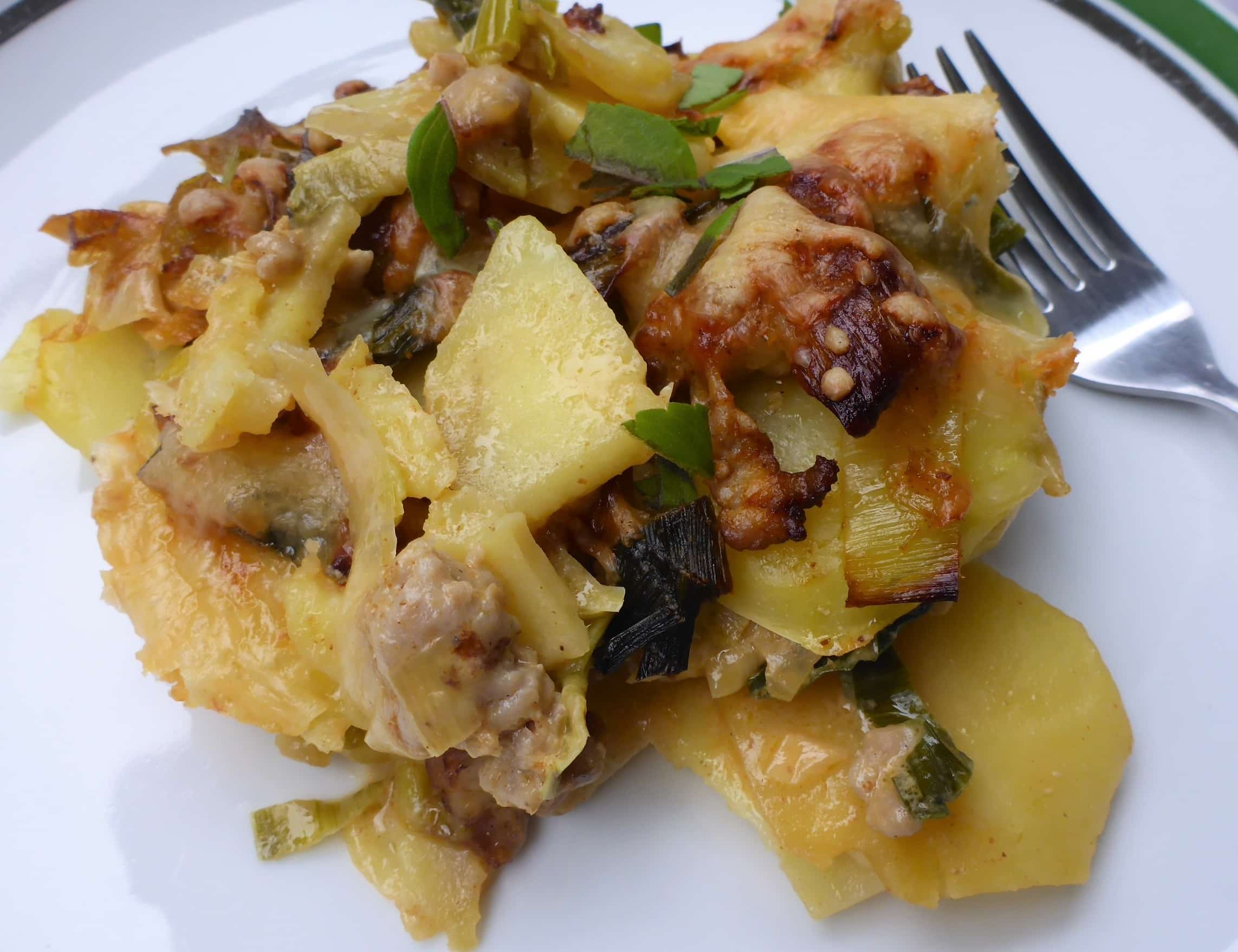 Ground pork and potato casserole with leek