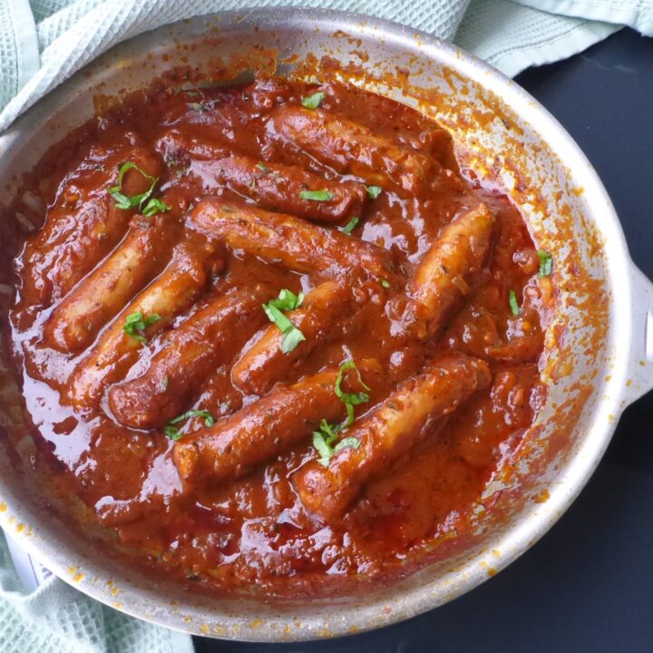 Namibischer Wursteintopf, auch bekannt als Wors Stew, ist ein köstliches, herzhaftes und einfaches Gericht, das nur aus einer Hand voll Zutaten besteht: Würstchen, Zwiebeln, Knoblauch, Tomaten, Chutney und Gewürze wie …